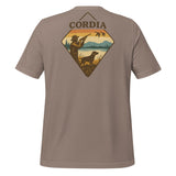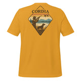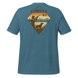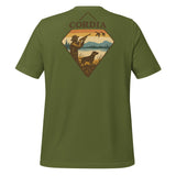 A throwback to your grandfather's duck hunts. This comfortable t-shirt is soft and lightweight, with the right amount of stretch. CORDIA chest logo on front, waterfowl graphic on the back.