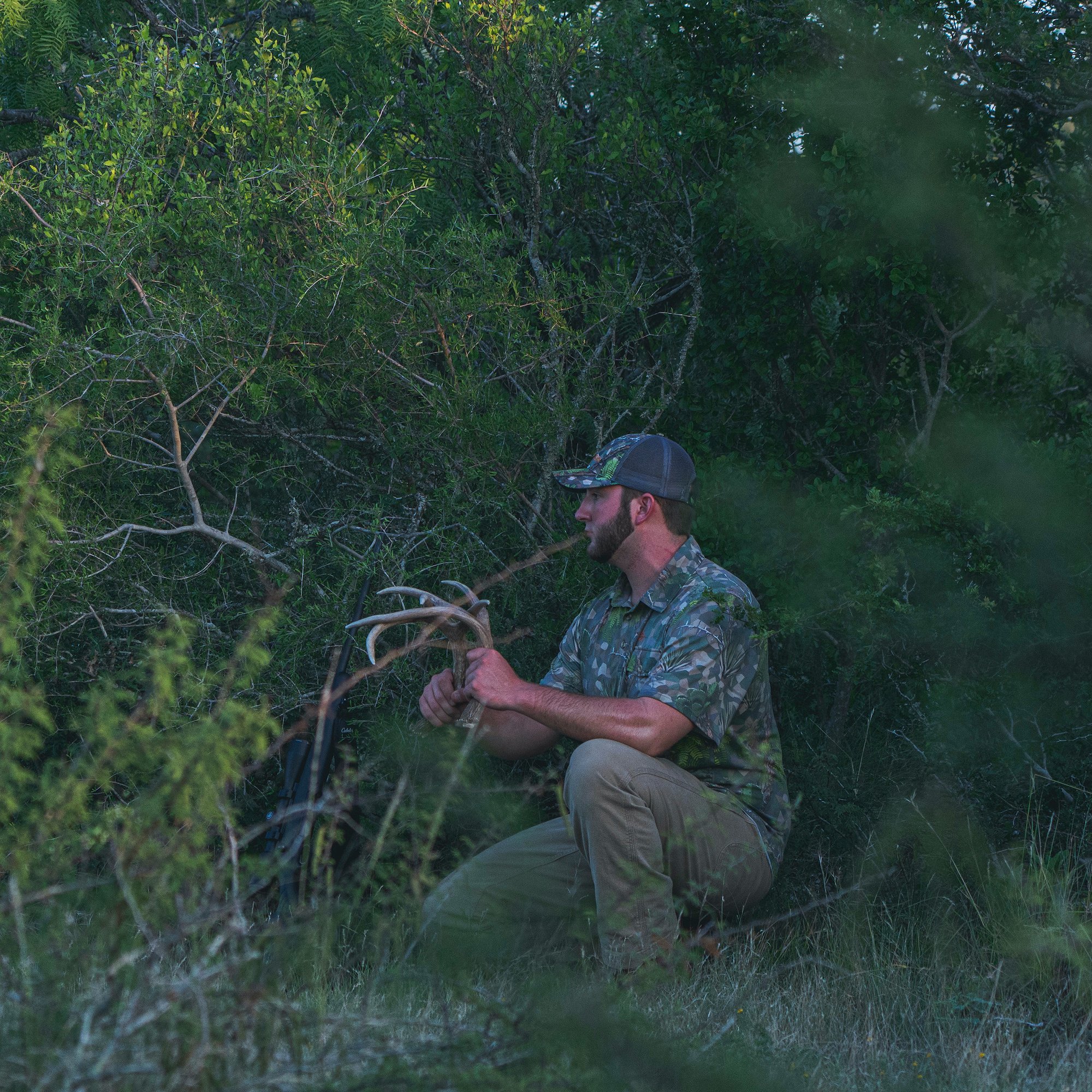 Due to the unique nature of our camouflage pattern, it can look different depending on the surroundings. In the Texas spring, the pattern easily blends into the dark green brush. In early fall, sand and mesquite green go to work. By November, the browns and grays are prominent. They add up to a pattern that will keep you hidden, when it matters most.
